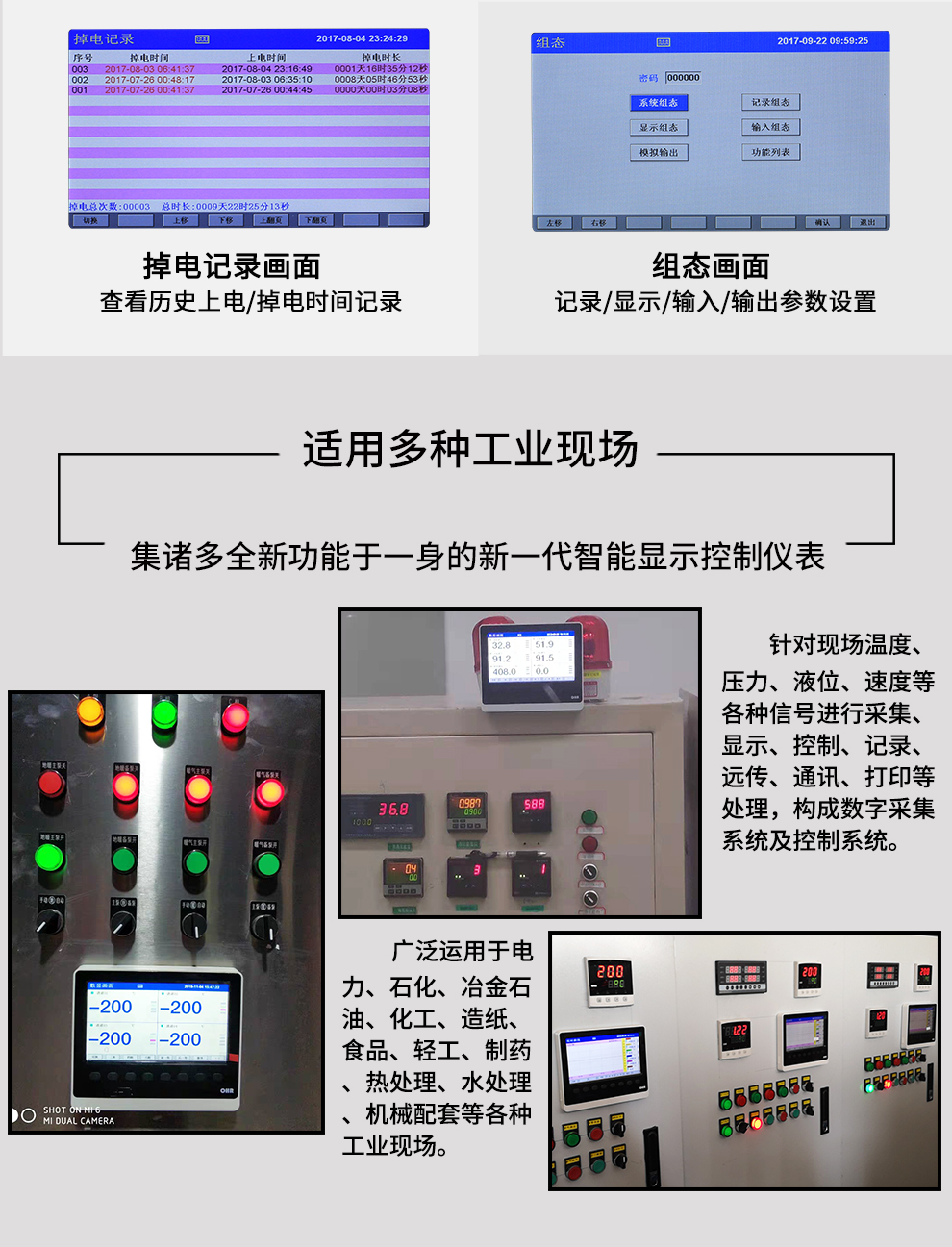 彩色無紙記錄儀/溫度記錄儀采用新型大規(guī)模集成電路,對輸入、輸出、電源、信號采取可靠保護和強抗干擾設計。機身短節(jié)約空間,深度僅為76mm。12路萬能信號輸入,可帶12路報警輸出,6個變送輸出,RS485通訊接口,以太網(wǎng)接口,微型打印機接口和USB接口,SD卡插座。