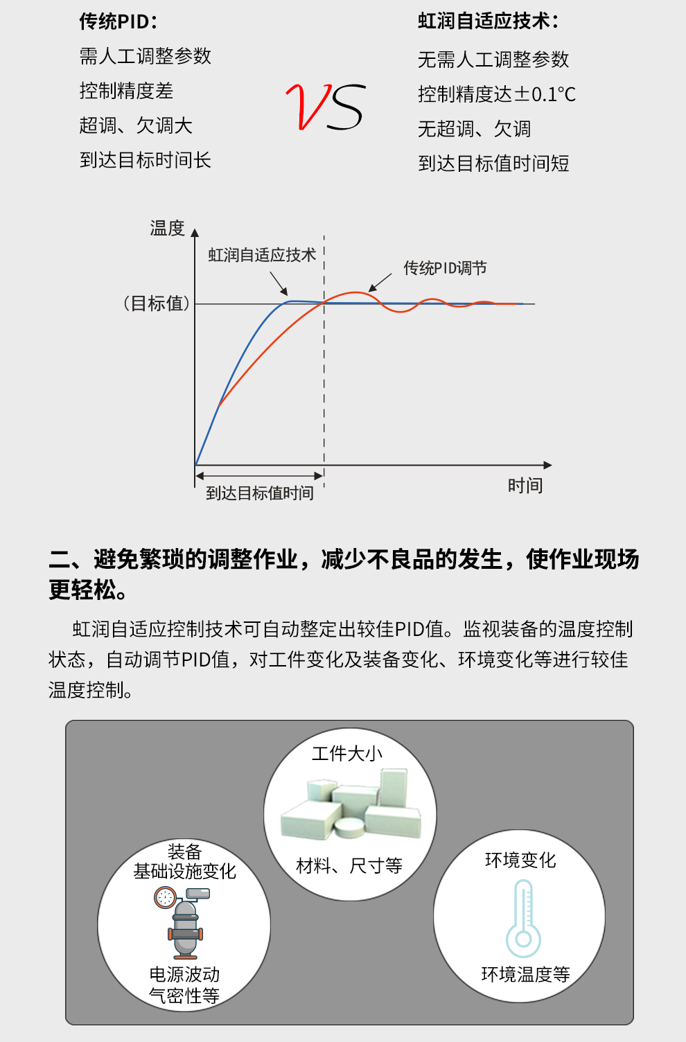 溫控器采用真正的人工智能算式,儀表啟動(dòng)自整定功能,可以根據(jù)被控對(duì)象的特性,自動(dòng)尋找參數(shù)以達(dá)到很好的控制效果,無需人工整定參數(shù)??販鼐然具_(dá)±0.1℃,無超調(diào)、欠調(diào),達(dá)國際先進(jìn)水平。寬電源設(shè)計(jì):20-260V交直流供電,配置高清顯示單元實(shí)現(xiàn)測(cè)量顯示、參數(shù)設(shè)定功能。