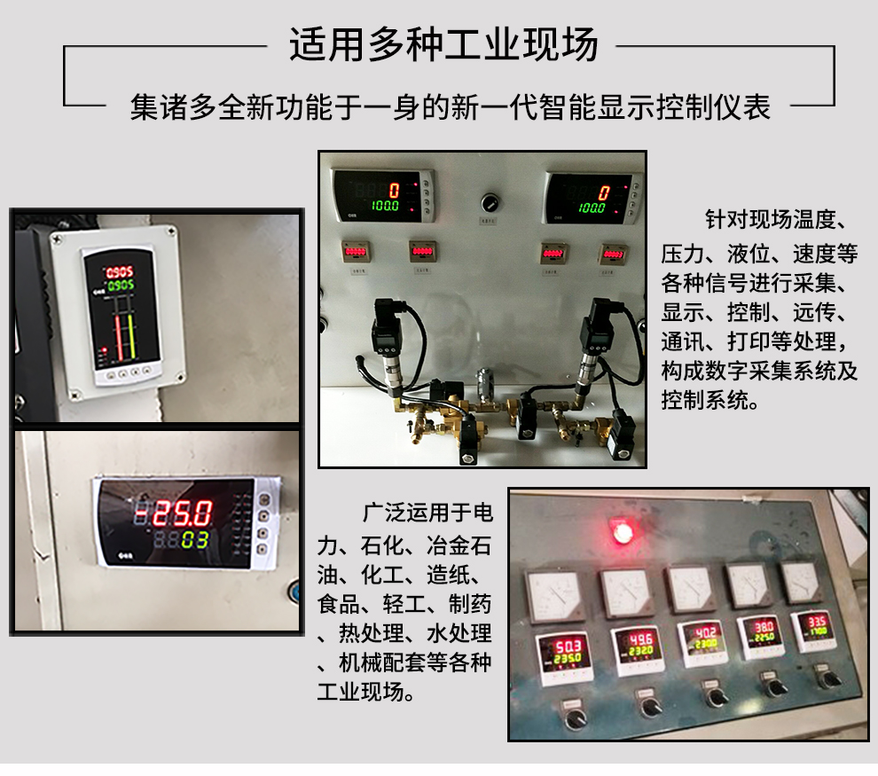 四回路測量顯示控制儀針對現(xiàn)場溫度、壓力、液位、速度等各種信號進行采集、顯示、控制、遠傳、通訊、 打印等處理,構(gòu)成數(shù)字采集系統(tǒng)及控制系統(tǒng)。