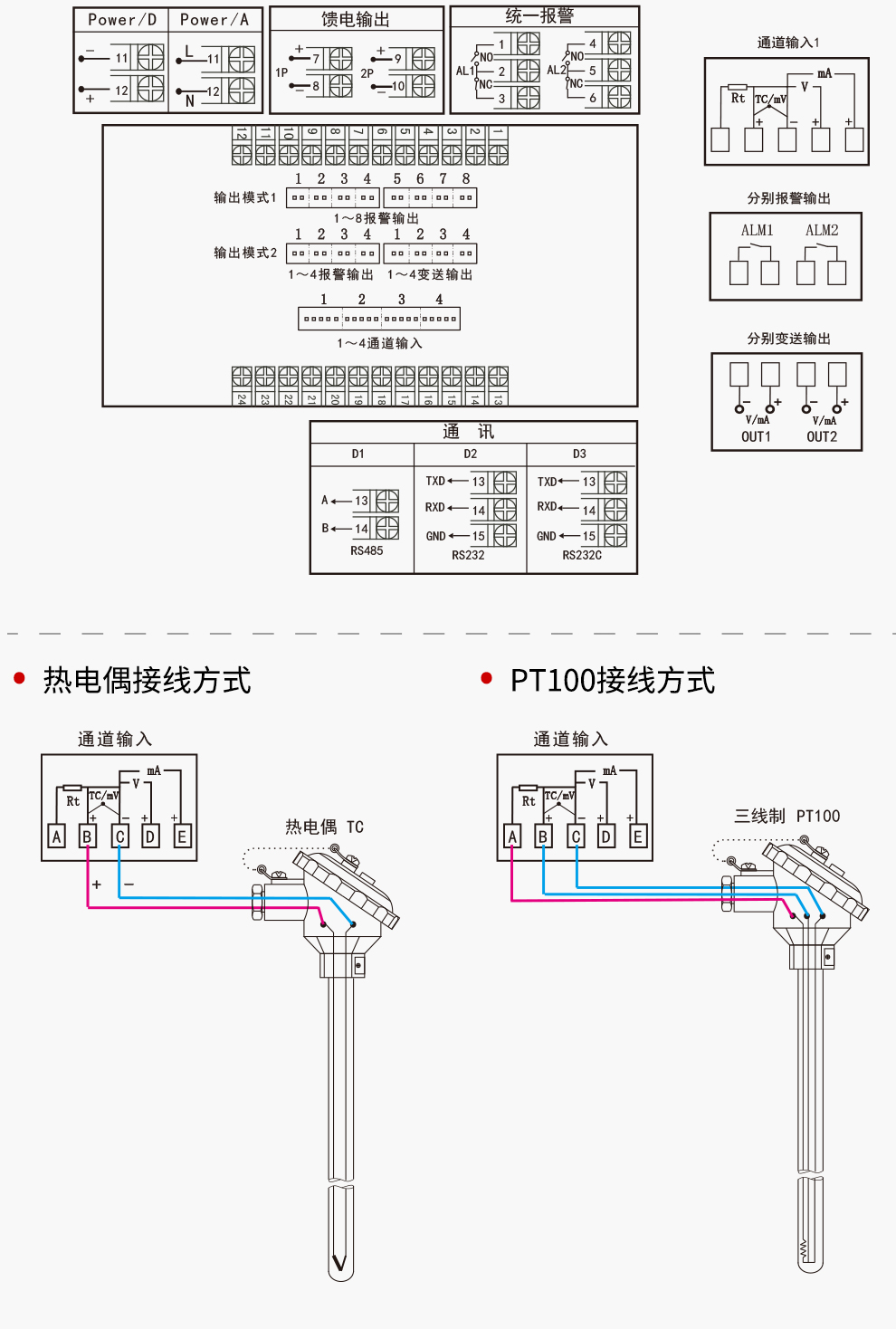答:24V配電是給傳感器供電的,一般如果是溫度信號(除溫度變送器外)直接輸入的話,就不要這個24V配電,主要是針對變送器、流量計,如壓力傳感器,溫度變送器,電磁、渦街流量計等??刂祁悆x表的配電是指:專為2線制變送器供電的電源,通常+端為24V輸出端,-端為信號采集端;其24V的-端與信號采集的-端在儀表內(nèi)部短接。饋電:饋電與輸入信號之間完全隔離,4線制傳感器普遍要求輸出與電源之間需要隔離,所以使用饋電連接;饋電的24V-端也可與輸入信號的負端短接實現(xiàn)與2、3線制變送器的連接。虹潤公司儀表的配電與饋電的負載能力當訂的為同款儀表,其負載能力相同,一般為30mA。