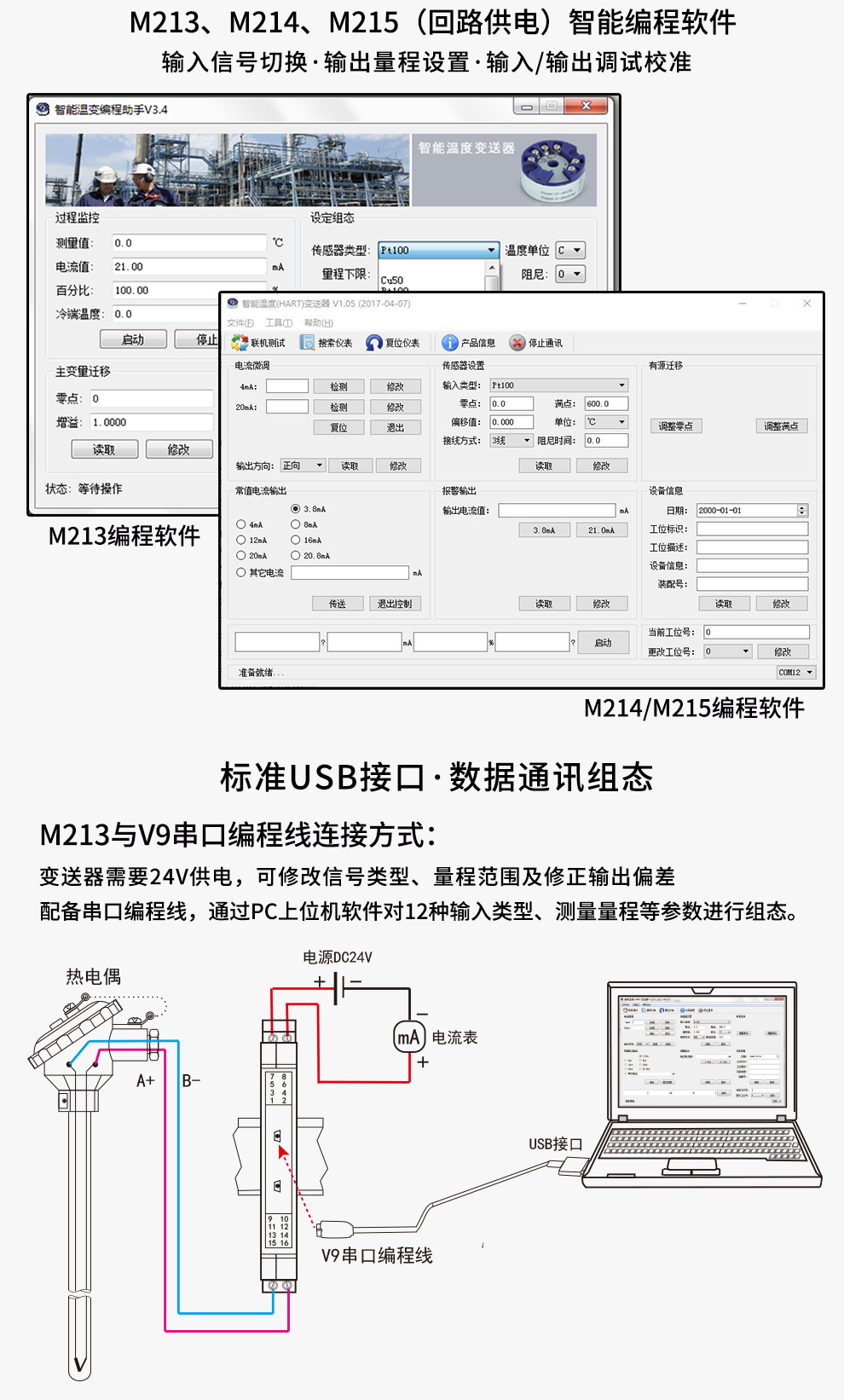 溫度變送器將現(xiàn)場的熱電阻或熱電偶等溫度傳感器信號經過隔離放大處理,轉換為與溫度成線性的二線制4-20mA信號輸出至控制系統(tǒng)。