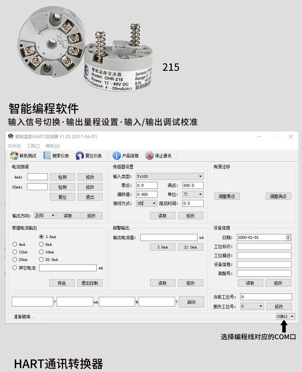 3、OHR-215智能溫度變送器編程助手V1.05 驅(qū)動程序(鼠標(biāo)右鍵另存下載)