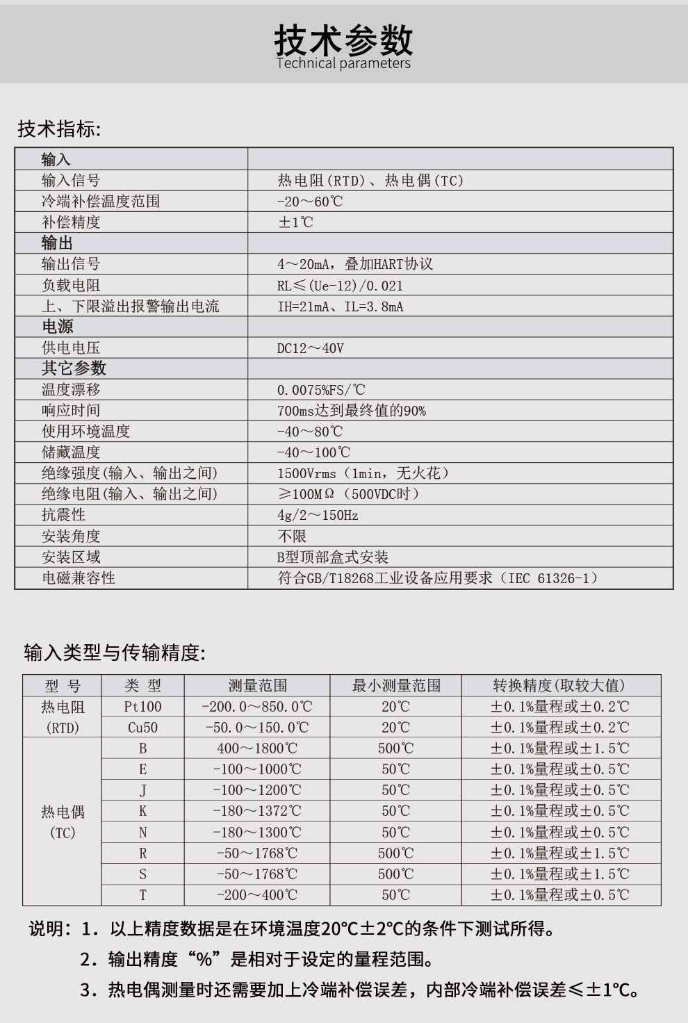 溫度變送器將現(xiàn)場的熱電阻或熱電偶等溫度傳感器信號經(jīng)過隔離放大處理,轉(zhuǎn)換為與溫度成線性的二線制4-20mA信號輸出至控制系統(tǒng)。