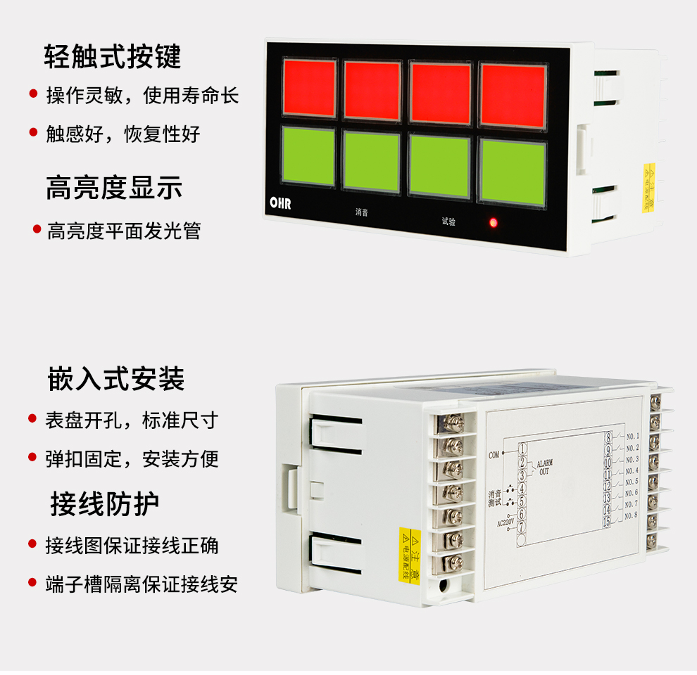 八路閃光報警器是一種接點式聲光報警顯示儀表,具有電路簡單、元件少、可靠性高、抗干擾能力強、低功耗、低噪聲、EMC電磁兼容等特點,廣泛運用于電力、石化、冶金、輕工、制藥、航空等諸多領(lǐng)域。